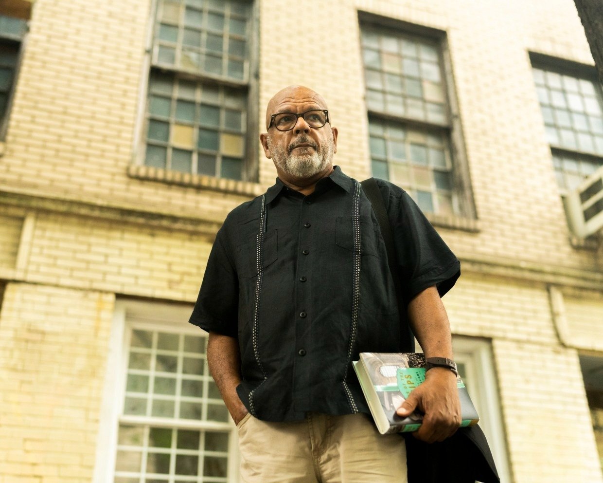 Historian Eric K. Washington at the Former Colored School No. 4 on West 17th Street in the Chelsea neighborhood of Manhattan. Credit: Elias Williams for NBC News