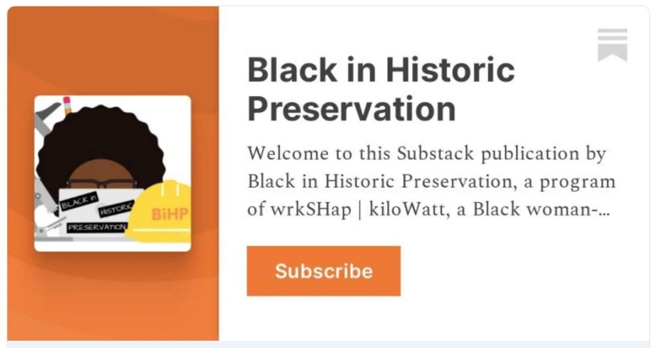 A Black in Historic Preservation publication that features the voices of Black Preservationists and suggestions to make historic preservation/heritage conservation and allied fields more equitable. Members get first priority to publish essays and OpEds in the Substack.
